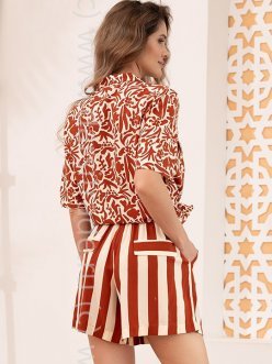Материал: 100% вискоза Комплект Mia-Amore состоит из жакета с коротким рукавом и шорт, выполнен из тканой принтованной вискозы: жакет с использованием основного принта, а шорты из принта-компаньона в полоску. Жакет с застежкой, на верхней части полочек жакета расположены накладные карманы с клапанами. По бокам шорт обработаны карманы. Комментарии к товару