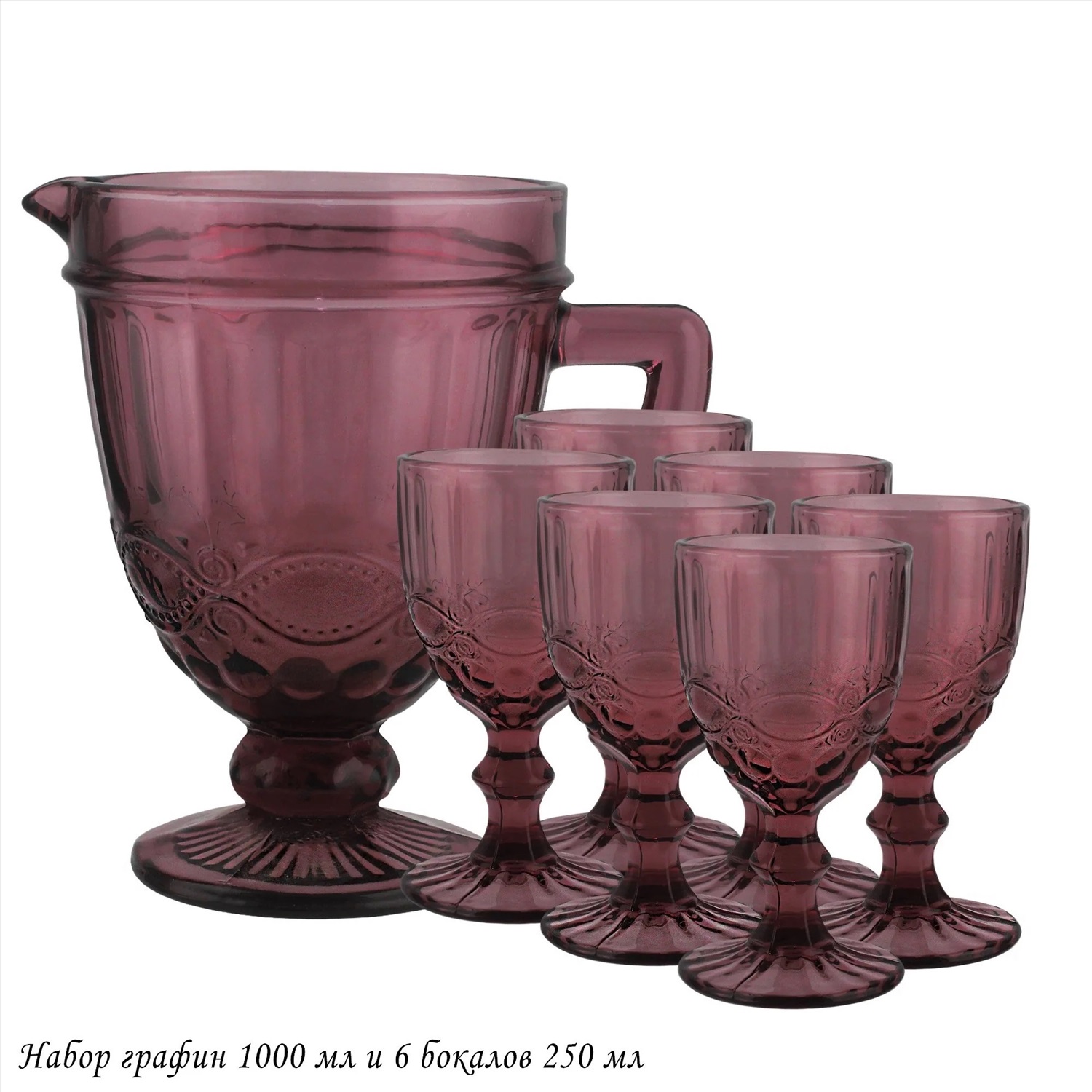 588-433 Набор графин и 6 бокалов 250 мл в под.уп.(х4) Розовый