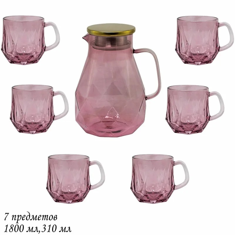 589-016 Набор: кувшин-заварник 1,9 л и 6 кружек 350 мл розовый, в под.уп.(х8)