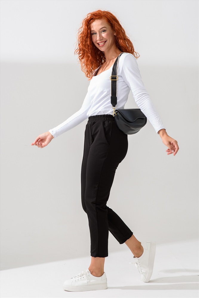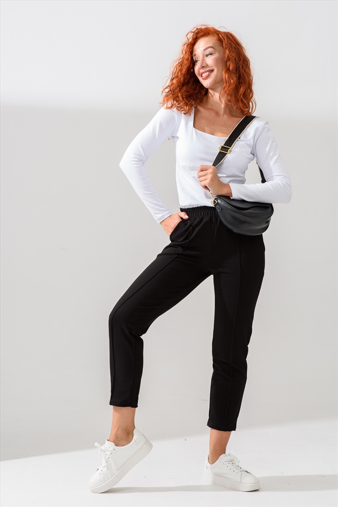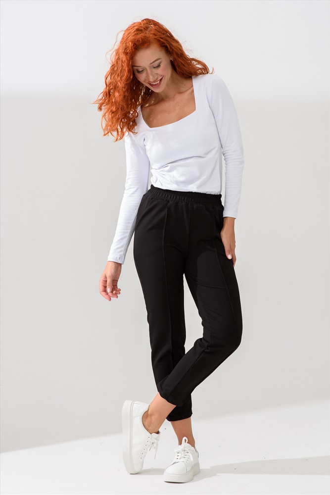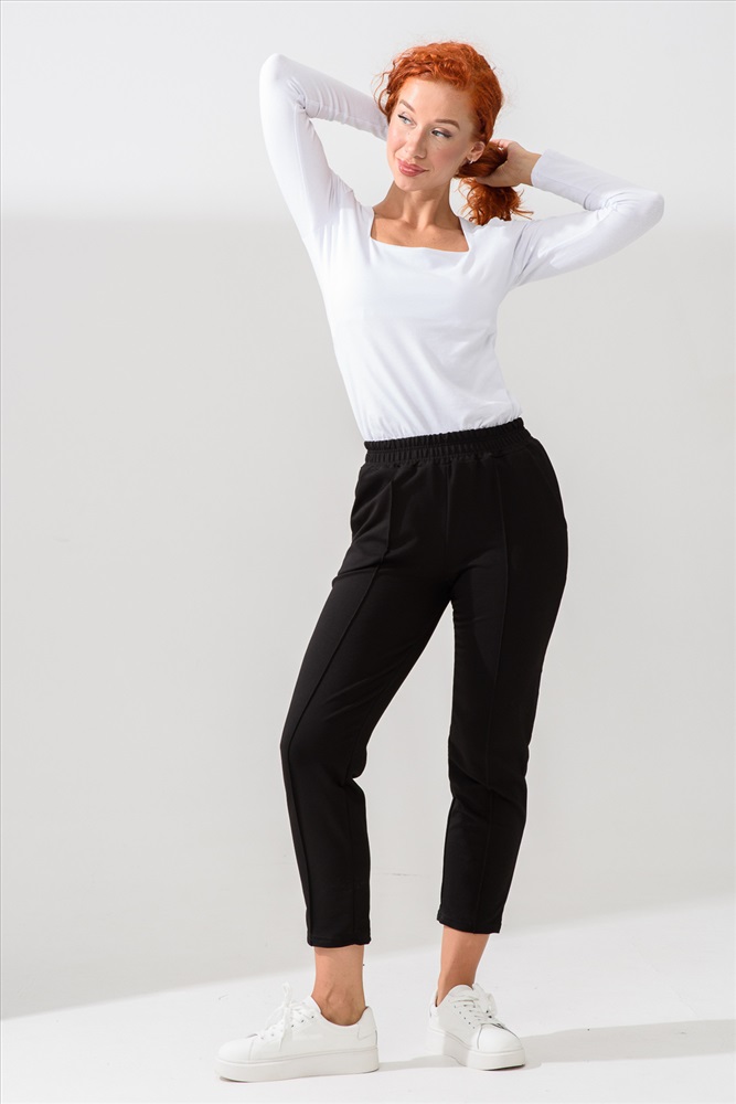 Комфорт и стиль на каждый день. Прошитая строчка удлиняет ноги, плотный трикотаж, подходят под любой тип фигуры, удобная замена классическим брюкам. Высокая посадка и эластичная резинка на поясе.