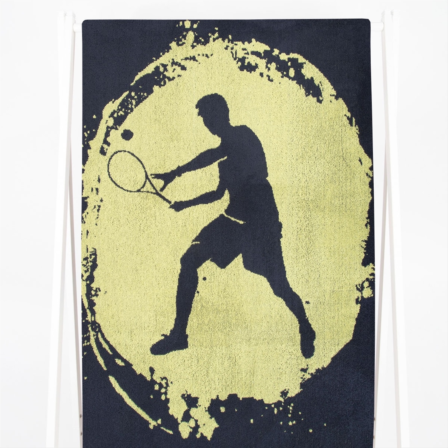 Артикул: 6с102.411ж1; Тип ткани: Махровая; Состав: 100% Хлопок; Вид оформления: Жаккардовая; Рисунок: Теннис; Цвет: т.серый1; Применение: 23 февраля, Баня, Ванная, Подарок мужчине; Производитель: Беларусь; Характер рисунка: Сюжетный; Оттенок цвета: Оттенки жёлтого, оранжевого цветов , Оттенки серого; Упаковка: без упаковки; Тип изделия: Полотенце; Размер полотенца, см: 67*150; Плотность, г/м²: 400; Тип полотенца: Банное
