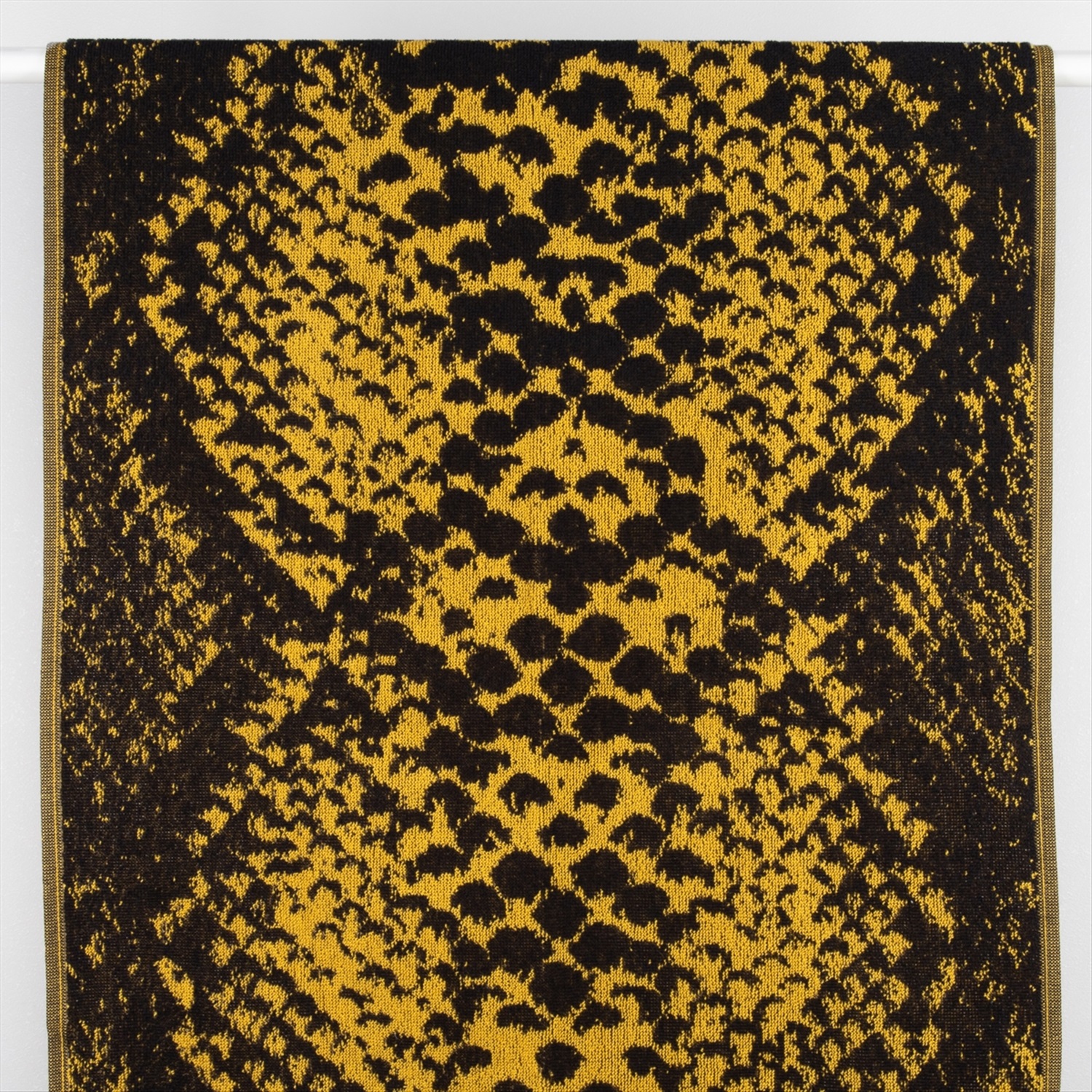Артикул: 6с103.412ж1; Тип ткани: Махровая; Состав: 100% Хлопок; Вид оформления: Жаккардовая; Рисунок: Боа; Цвет: черное золото; Применение: Баня, Ванная, Для лица; Производитель: Беларусь; Характер рисунка: Животный мир; Оттенок цвета: Оттенки жёлтого, оранжевого цветов , Чёрный цвет; Упаковка: без упаковки; Тип изделия: Полотенце; Размер полотенца, см: 50*90; Плотность, г/м²: 400; Тип полотенца: Для лица