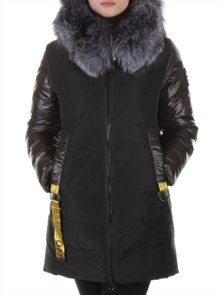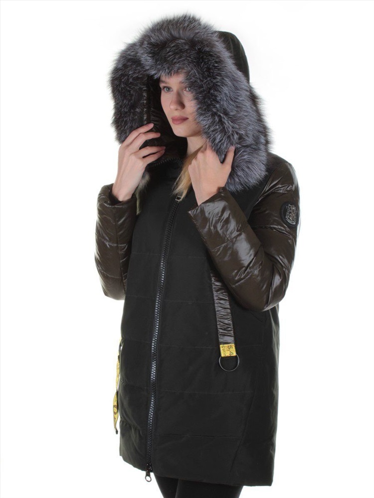 Пальто зимнее с мехом (холлофайбер, натуральный мех чернобурки)