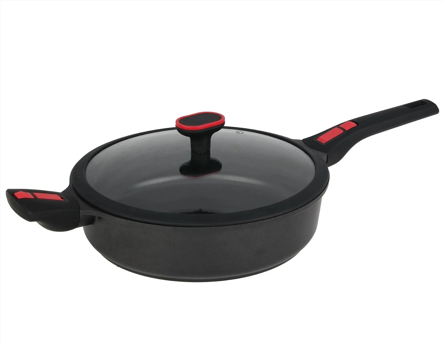 Коллекция PASSION изготовлена из кованного алюминия, благодаря чему посуда обладает отличной теплопроводностью и низкой теплоемкостью Внутреннее покрытие состоит из двухслойного антипригарного покрытия, оно идеально гладкое, легко моется, можно жарить с малым количеством масла или вовсе без него Внешняя отделка выполнено из термостойкой эмали черного цвета. Ручка из нержавеющей стали золотого цвета, не скользит и не нагревается. Литая под высоким давлением стеклянная крышка Универсальное дно позволяет готовить на всех видах плит, включая индукционные. Можно мыть в посудомоечной машине.