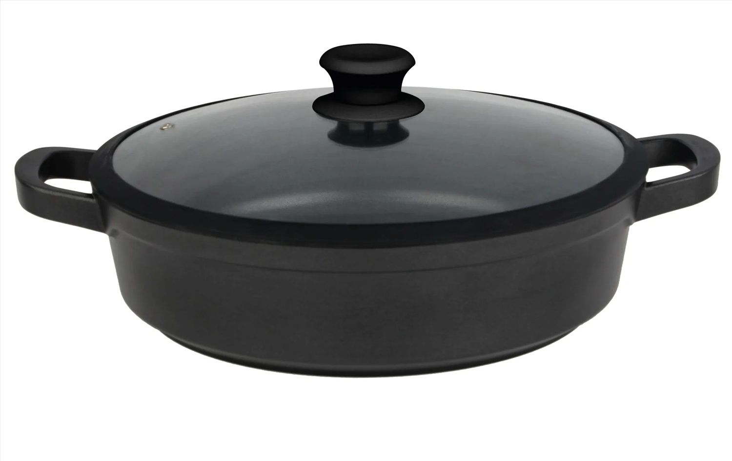 Коллекция MISTERY изготовлена из кованного алюминия, благодаря чему посуда обладает отличной теплопроводностью и теплоемкостью. Внутреннее покрытие состоит из двухслойного антипригарного покрытия, оно идеально гладкое, легко моется, можно жарить с малым количеством масла или вовсе без него. Внешняя отделка выполнено из термостойкой эмали черного цвета. Бакелитовая ручка на корпусе с эффектом soft touch, не скользит и не нагревается. Стеклянная крышка с силиконовым ободком и бакелитовой ручкой с эффектом soft touch. Универсальное дно позволяет готовить на всех видах плит, включая индукционные. Можно мыть в посудомоечной машине.