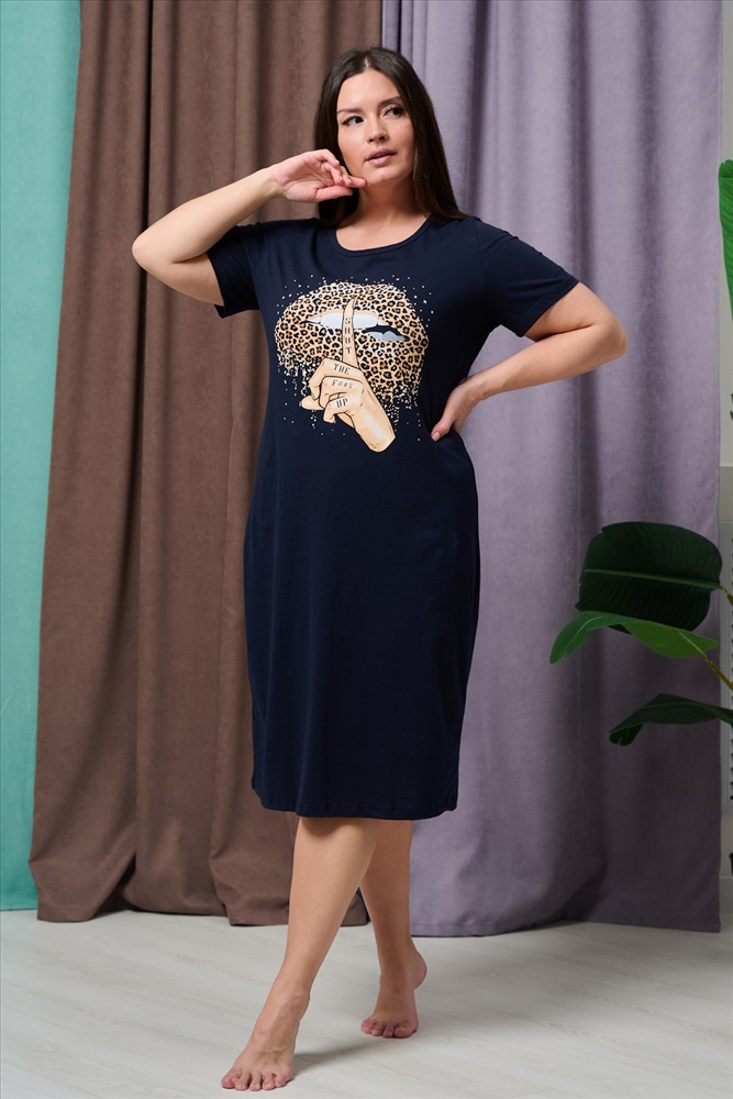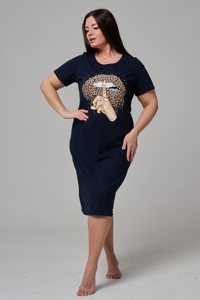 Туника полуприлегающего силуэта, с округлой горловиной, длиной ниже колена. Рукав втачной, короткий. Горловина обработана бейкой из основного полотна.