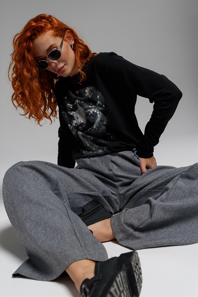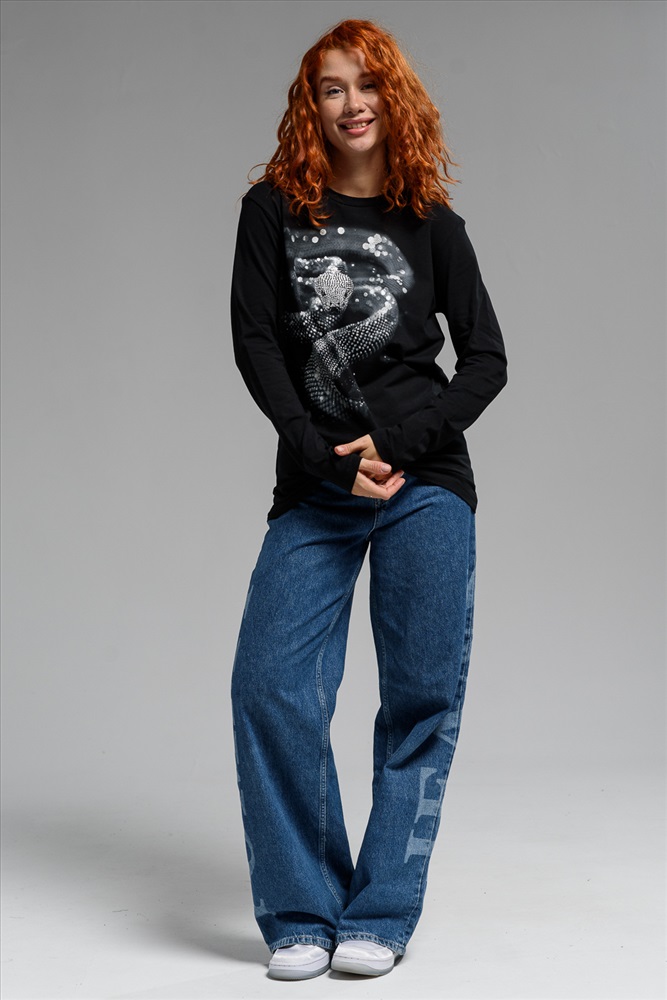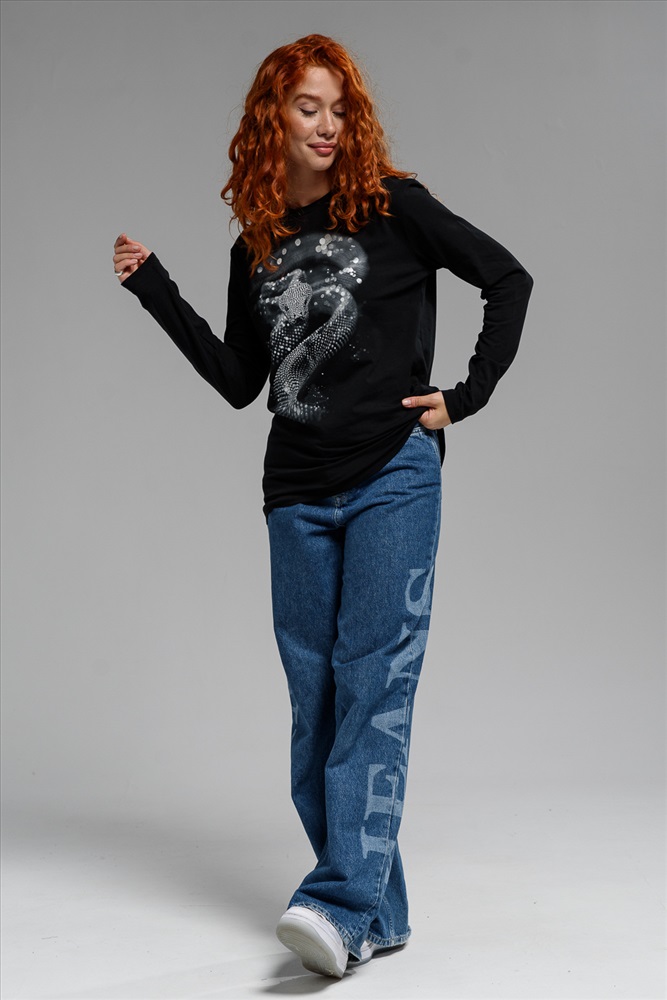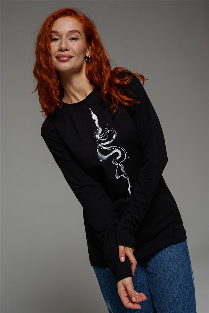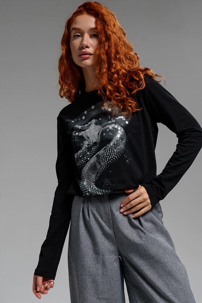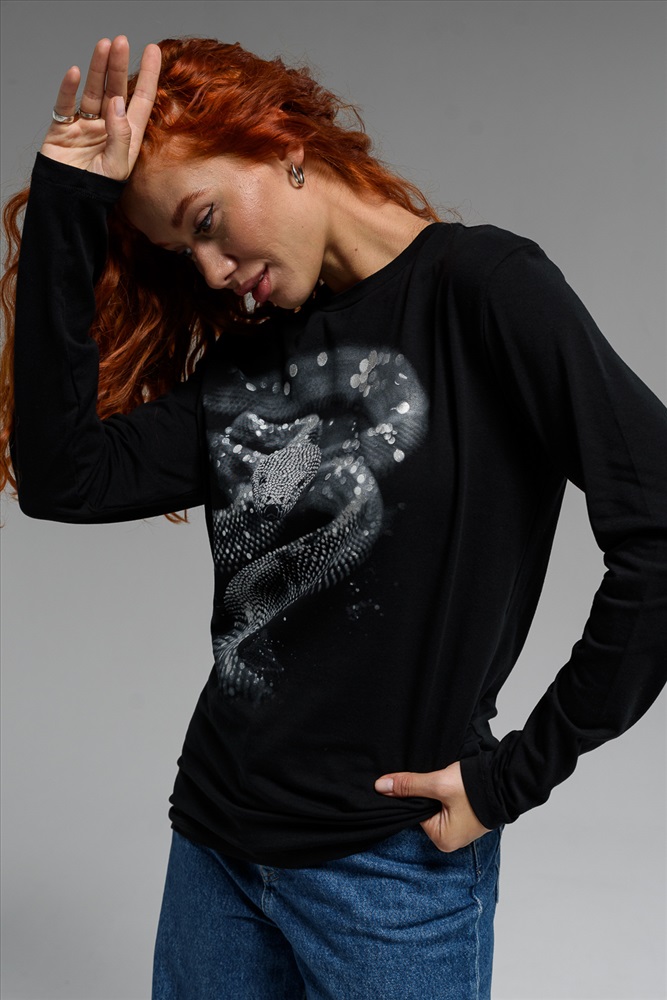 Лонгслив снова в моде и прочно обосновался в базовом гардеробе современного человека. Удобная трикотажная кофта представляет собой футболку с длинным рукавом, которую можно использовать как самостоятельный элемент, так и носить под пиджак, толстовку или рубашку. Лонгслив выполнен из высокоплотного хлопкового трикотажа и является невероятно комфортным и удобным. Футболка с длинными рукавами имеет прямой базовый крой и классическую линию плеча. Лонгслив - это неформальный стиль, когда на футболку можно надеть клетчатую рубашку и сочетать с кедами и джинсами. За счет натуральной ткани лонгслив можно носить в качестве домашней одежды или нательного белья, одежды для сна, тренировочной спортивной одежды и военной экипировки. Если вы хотите силуэт оверсайз нужно взять на размер или два больше, ориентируйтесь по таблице замеров. На принте черный+Змея стразы страз нет. Выполнен слой глиттером - мелкими, рассыпчатыми и переливающимися блестками, очень яркие и блестящие.