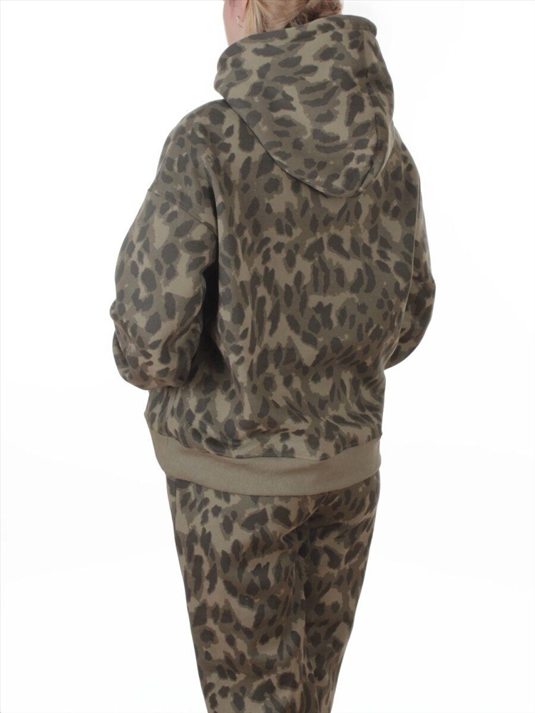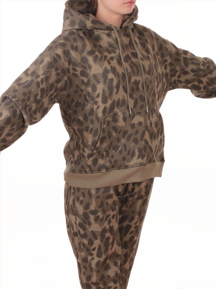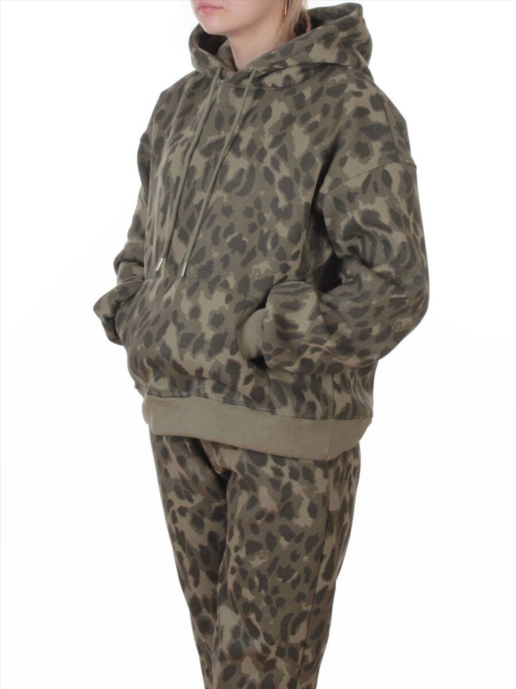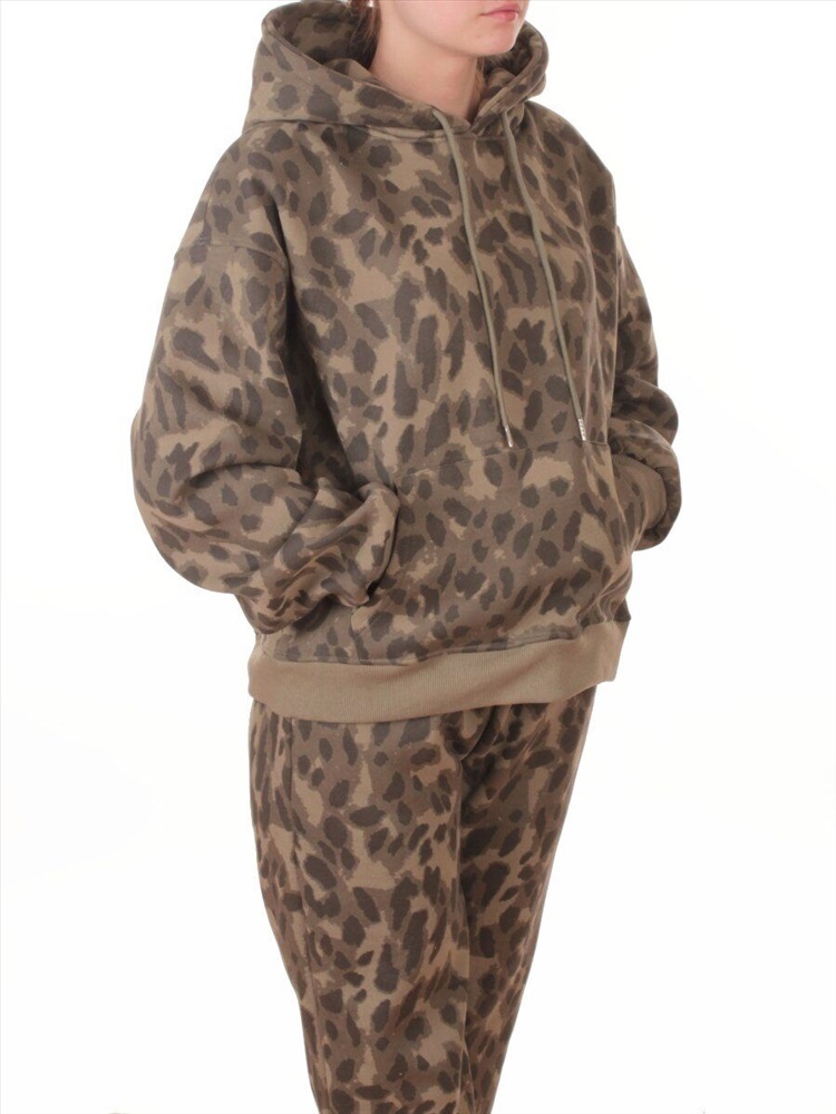 Кол-во в упаковке: 1 Костюм спортивный зимний женский (95% хлопок, 5% полиэстер) Модель сезона: осень - зима. Артикул: 868-6 GREEN/LEOPARD Дополнительная информация: Ткань плотная - флис. Толстовка: Несъемный двухслойный капюшон с регулировочным шнурком. На рукавах и по низу трикотажные манжеты. Каман - кенгуру. Брюки: Два кармана спереди. Пояс на резинке с регулировочным шнурком, ширина 5 см. По низу штанин резинки. Состав ткани: 95% хлопок, 5% полиэстер. Фото сделано на модели размера 44/46: Рост модели 175 см., объем груди 90, талия 72, бедра 96. Витринный образец размера M - 44/46 российский: Толстовка: Длина спины: 61 см. Объем груди: 120 см. Объем талии: 110 см. (тянется) Длина плеча до линии рукава: 19 см. Длина рукава от линии плеча 56 см. Брюки: Объем талии: 70 см. (тянется) Объем бедер 102 см. Объем колена 48 см. Объем по нижней части штанины 30 см. Длина внешней части штанины (замеры из под пояса) 94 см. Длина внутренней части штанины 68 см. Посадка (с поясом) 34 см. Размер указанный на спортивном костюме и соответствие российским стандартам: M - 44/46 российский L - 46/48 российский XL - 48/50 российский Комментарии к товару