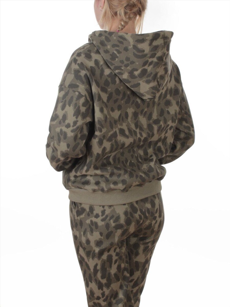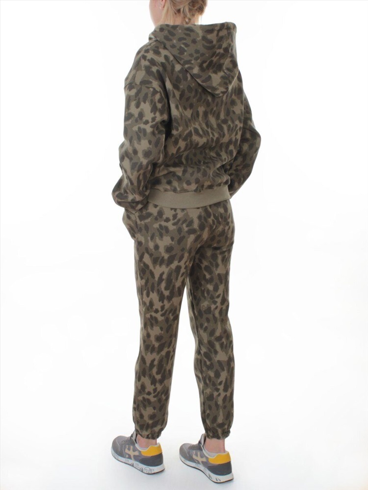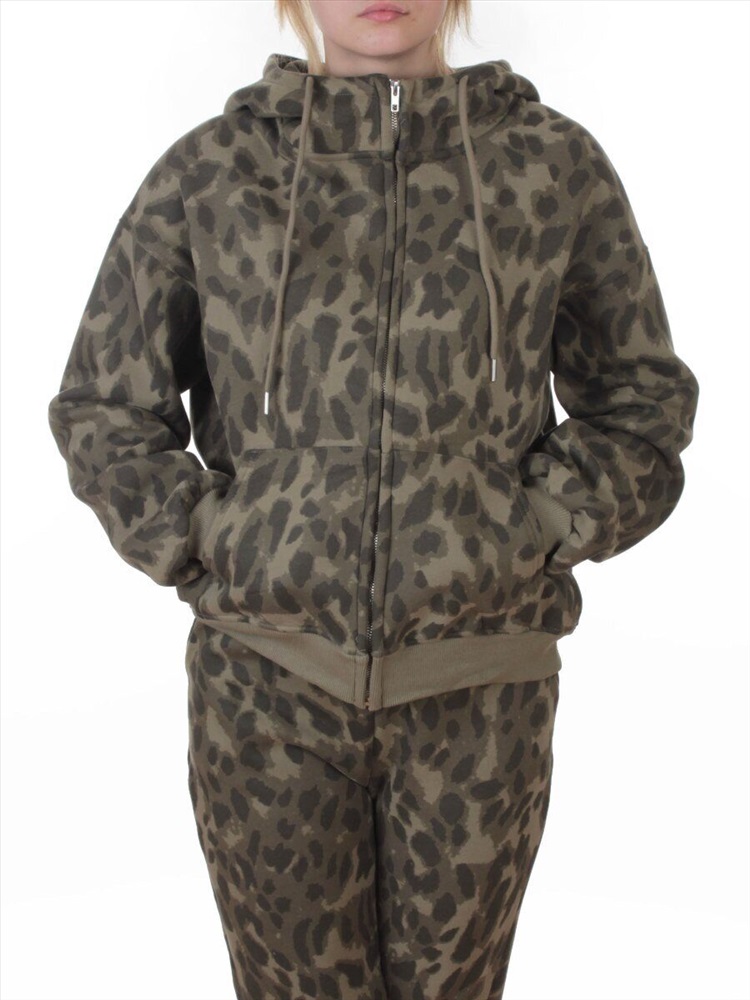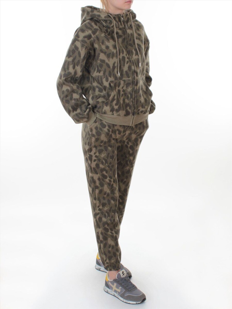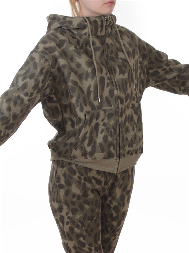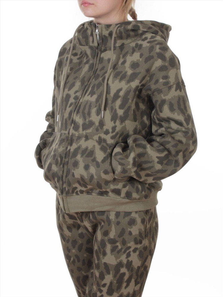 Кол-во в упаковке: 1 Костюм спортивный зимний женский (95% хлопок, 5% полиэстер) Модель сезона: осень - зима. Артикул: 869-3 GREEN/LEOPARD Дополнительная информация: Ткань плотная - флис. Толстовка: Центральная застежка на молнию. Несъемный двухслойный капюшон с регулировочным шнурком. На рукавах и по низу трикотажные манжеты. Два накладных кармана спереди. Брюки: Два кармана спереди. Пояс на резинке с регулировочным шнурком, ширина 5 см. По низу штанин резинки. Состав ткани: 95% хлопок, 5% полиэстер. Фото сделано на модели размера 44/46: Рост модели 175 см., объем груди 90, талия 72, бедра 96. Витринный образец размера M - 44/46 российский: Толстовка: Длина спины: 59 см. Объем груди: 120 см. Объем талии: 100 см. (тянется) Длина плеча до линии рукава: 20 см. Длина рукава от линии плеча 57 см. Брюки: Объем талии: 70 см. (тянется) Объем бедер 104 см. Объем колена 48 см. Объем по нижней части штанины 32 см. Длина внешней части штанины (замеры из под пояса) 95 см. Длина внутренней части штанины 68 см. Посадка (с поясом) 34 см. Размер указанный на спортивном костюме и соответствие российским стандартам: M - 44/46 российский L - 46/48 российский XL - 48/50 российский Комментарии к товару