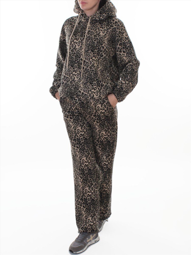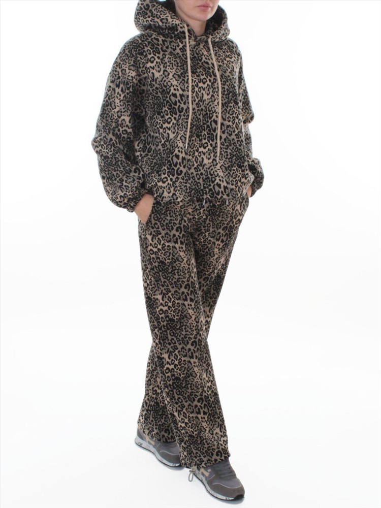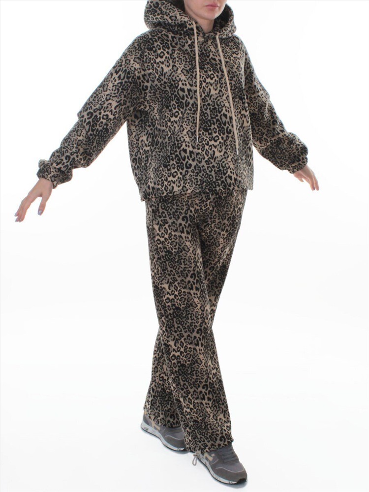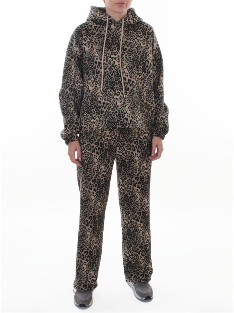 Кол-во в упаковке: 1 Костюм спортивный зимний женский (95% хлопок, 5% полиэстер) Модель сезона: осень - зима. Артикул: 870-8 DK. BEIGE/LEOPARD Дополнительная информация: Ткань плотная - флис. Толстовка: Несъемный двухслойный капюшон с регулировочным шнурком. На рукавах манжеты с резинкой. По низу толстовки регулировочная резинка с фиксаторами. Брюки: Два кармана спереди. Пояс на резинке с регулировочным шнурком, ширина 5 см. По низу штанин регулировочные резинки с фиксаторами. Фото сделано на модели размера 44/46 Рост модели 175 см., объем груди 90, талия 72, бедра 96. Витринный образец размера M - 44/46 российский: Толстовка: Длина спины: 59 см. Объем груди: 120 см. Объем талии: 114 см. Длина плеча до линии рукава: 19 см. Длина рукава от линии плеча 53 см. Брюки: Объем талии 70 см. (тянется) Объем бедер 104 см. Объем колена 50 см. Объем по нижней части штанины 48 см. Длина внешней части штанины (замеры из под пояса) 102 см. Длина внутренней части штанины 76 см. Посадка (с поясом) 32 см. Состав ткани: 95% хлопок, 5% полиэстер. Размер указанный на спортивном костюме и соответствие российским стандартам: M - 44/46 российский L - 46/48 российский XL - 48/50 российский Комментарии к товару