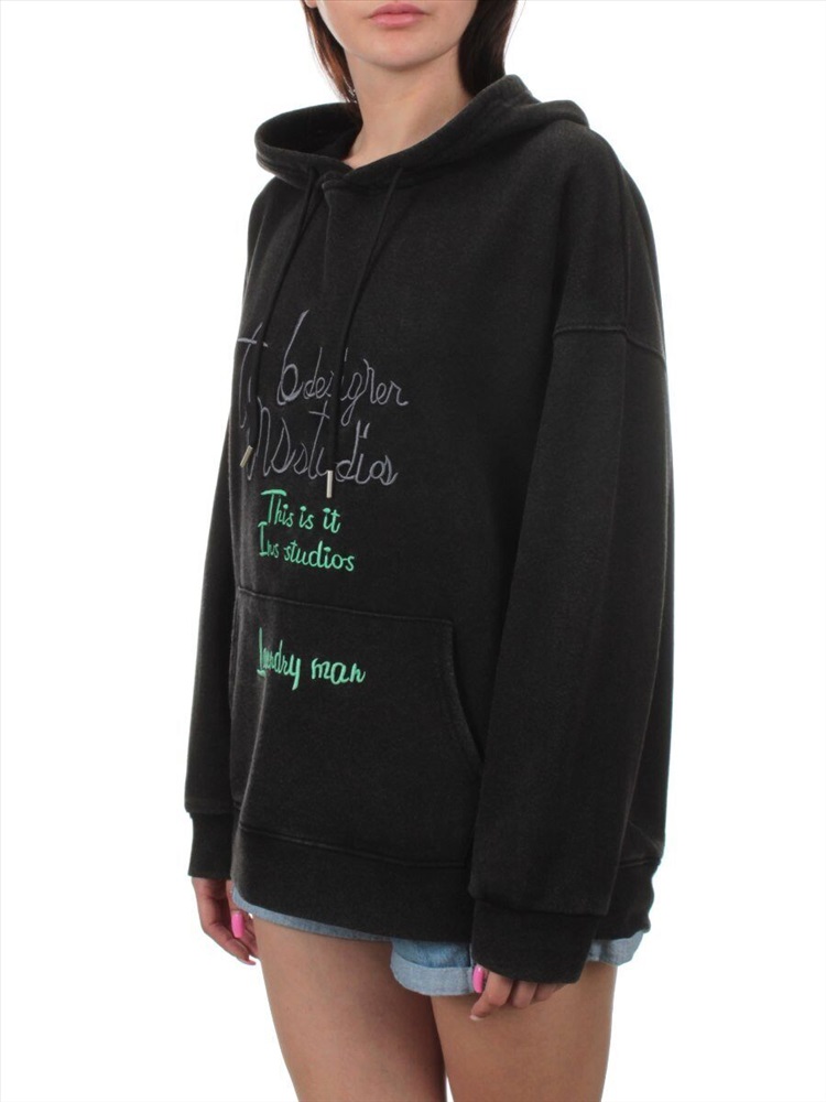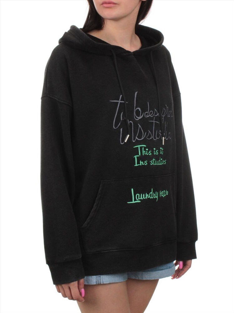 Худи женское, варенка оверсайз с вышивкойАртикул: 8811 BLACK Дополнительная информация: Трикотажные манжеты на рукавах и по низу худи. Капюшон несъемный (ткань в два слоя). Регулировочные шнурки на капюшоне.