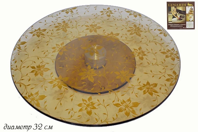 888-046 Тортовница вращающаяся "Золотой цветок 32см тёмная (х11)