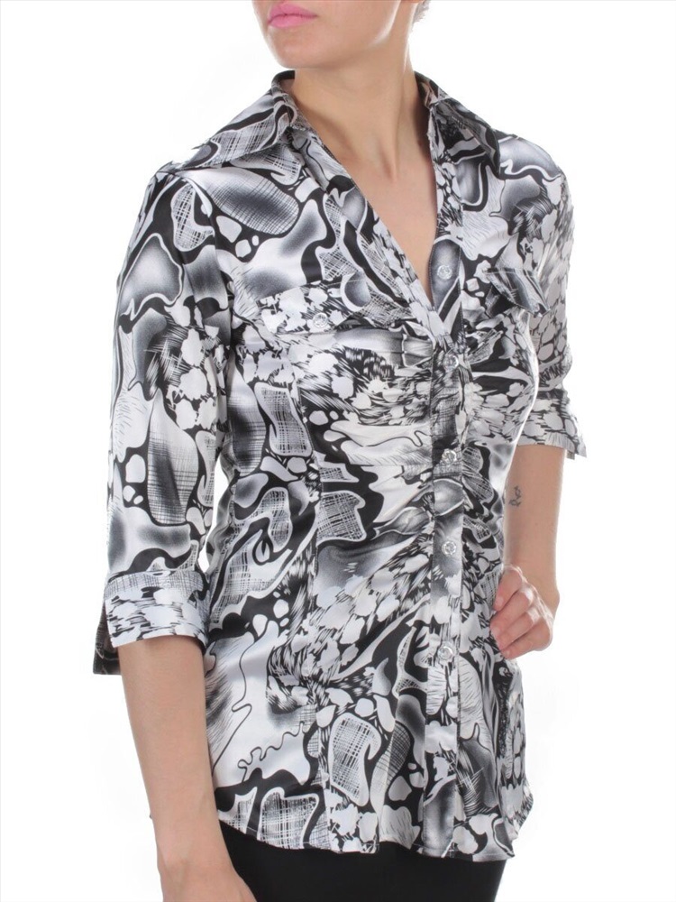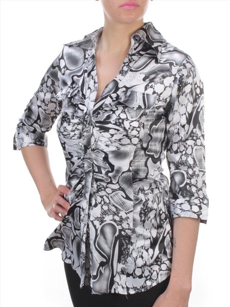 Кол-во в упаковке: 1 Блузка женская (67% хлопок, 33% полиэстер) размеры 42-44-46-48-50 Артикул: 98061 Данная модель приталенного кроя по типу рубашки будет отлично смотреться с джинсами – дудочками или узкими юбками. Разнообразие в повседневный образ также внесет чуть заметный волан спереди по низу изделия. Глубокий клинообразный вырез дополнен отложным воротником и застежкой на пуговицы. Мягкий материал плавно облегает фигуру, искусно демонстрируя изящные линии женственного силуэта. С этой вещью можно немного поиграть и получить индивидуальные образы, комбинируя ее различными низами. Дополнительная информация: Центральная застежка на пуговице Фото сделано на модели размера 44 Рост модели 167 см., объем груди 90, талия 65, бедра 95. Витринный образец размера S (42 российский) Длина спины: 68 см. Ширина спины: 44 см. Длина рукава: 42 см. Длина плеча: 12 см. Размеры указанные на изделии и соответствие российским стандартам: S - 42 российский M - 44 российский L - 46 российский XL - 48 российский 2XL - 50 российский Комментарии к товару