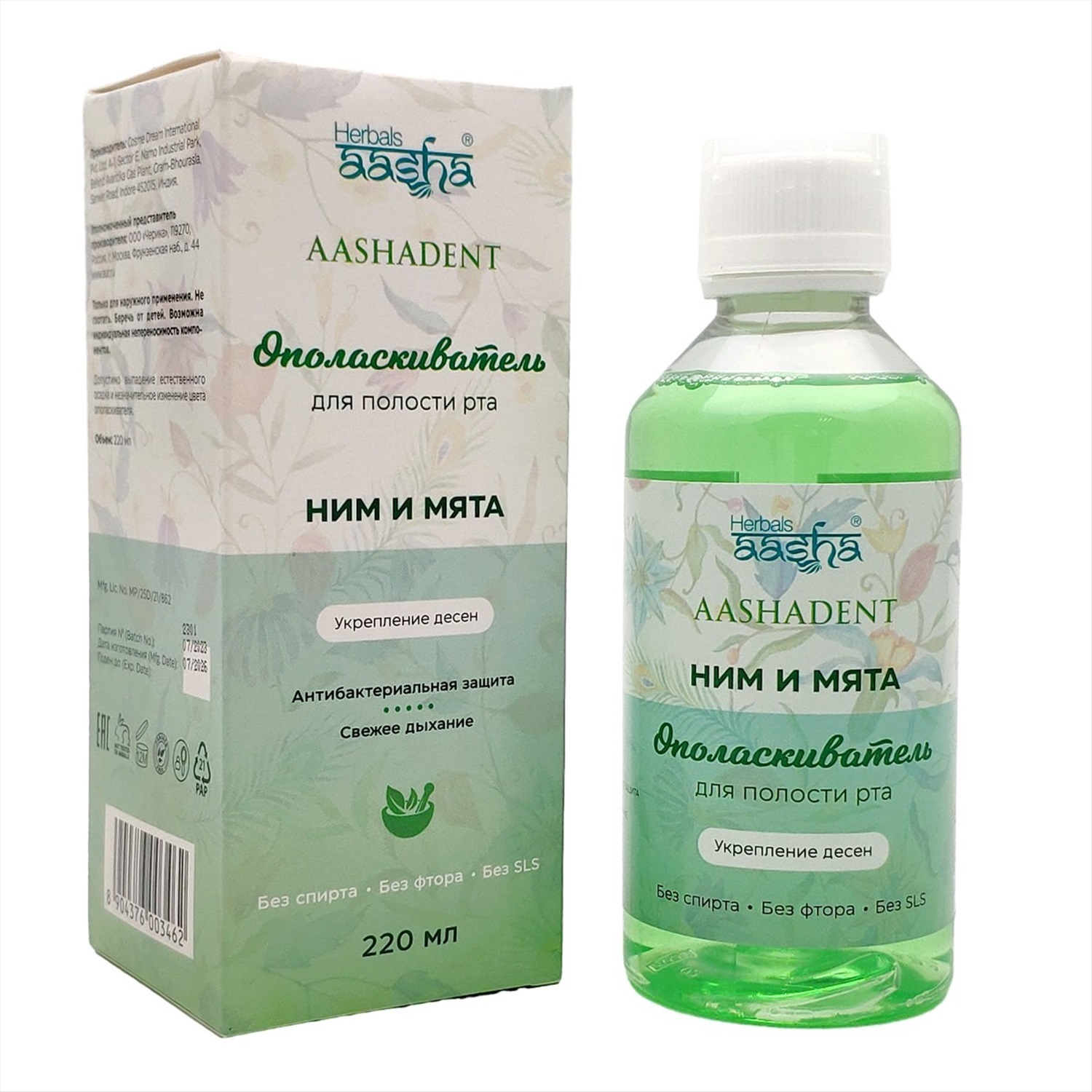 Натуральный ополаскиватель для полости рта Ним и Мята Ааша Хербалс специально разработанная формула на основе натуральных активных компонентов без использования спирта. Ним обладает мощным антибактериальным эффектом, снимает воспаление десен. Масло чайного дерева эффективно для профилактики образования зубных камней и развития стоматита, снижает отечность и кровоточи вость десен. Мята придает освежающий вкус и приятную прохладу, обеспечивает свежее дыхание на весь день.