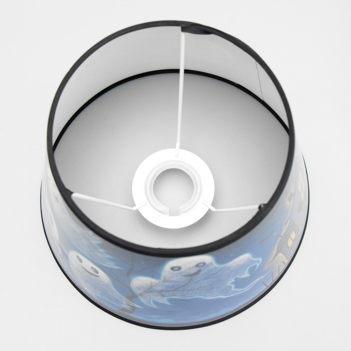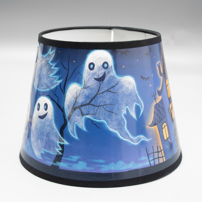 Синий цвет абажура создаёт атмосферу таинственности и уюта, особенно в вечернее время, когда мягкий свет проходит через его поверхность, формируя причудливые тени на стенах. Принт с силуэтами призраков добавляет игривости и нотку мистики, что делает этот аксессуар идеальным выбором для создания уникальной атмосферы в вашем доме. Подходит для ламп с цоколем E14, что делает его совместимым с большинством современных светильников.