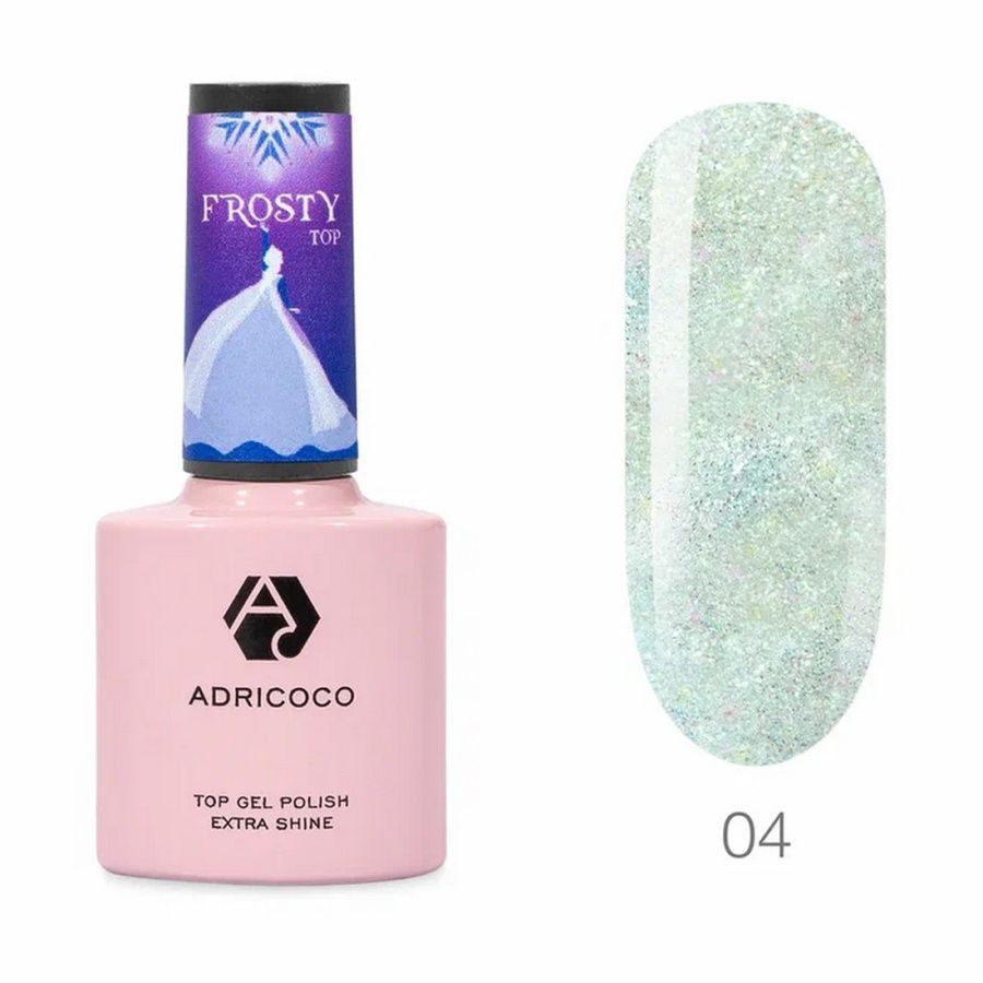 Закрепитель хамелеон для гель-лака ADRICOCO Frosty Top со светоотражающими частицами защищает покрытие от сколов и трещин, сохраняет стойкость до 4 недель.