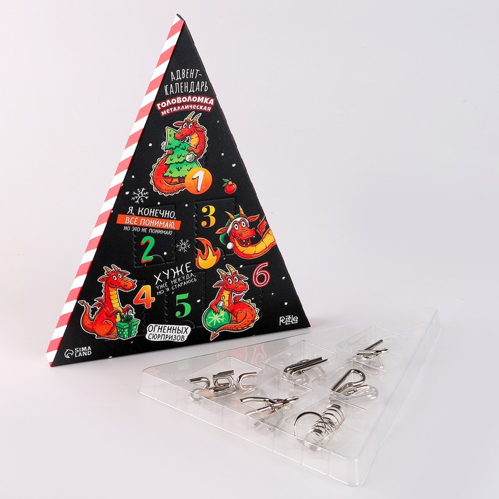 Габариты: 24,5 x 20 x 2 Страна: Китай В боксе: 120 набор Состав: Металл Материалы: металл Фасовка: по 1 набор Индивидуальная упаковка: Цветная картонная коробка Габариты товара: 26 см × 2 см × 20 см Сертификат: Не подлежит сертификации Для кого: Унисекс Возраст: От 3 лет Символ года: Нет Тематика праздника: Новый год Материал: Металл Сложность головоломки: 3 Комментарии к товару