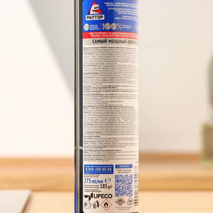 Производитель: Раптор; Габариты: 5,3 x 5,3 x 24; Страна: Россия; В боксе: 12 шт; Состав: См. на упаковке; Материалы: см. на упаковке; Фасовка: по 1 шт; Индивидуальная упаковка: Без упаковки; Сертификат: РСТ; Область применения: От тараканов; Вид средства: Отрава; Способ нанесения: Распыление; Действующие вещества: Ципереметрин; Форма средства: Аэрозоль