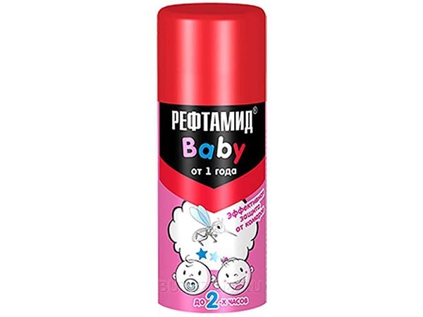 Средство репеллентное "Рефтамид Baby для всей семьи" для защиты взрослых людей и детей от 1 года от нападения кровососущих насекомых (комаров, мокрецов, москитов) при нанесении на открытые части тела, одежду и другие изделия из ткани. Эффективная защита от комаров до 2 часов.