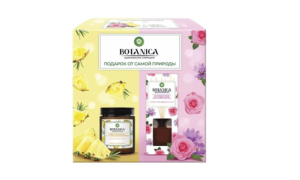 Подарочный набор Air Wick Botanica Свеча ароматизированная 205г и Диффузор ароматический для дома 80мл
