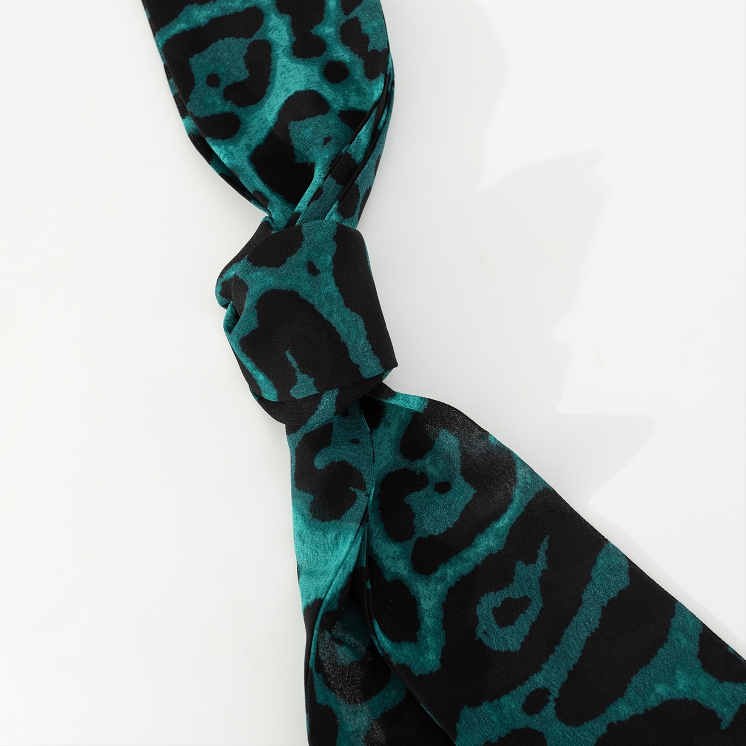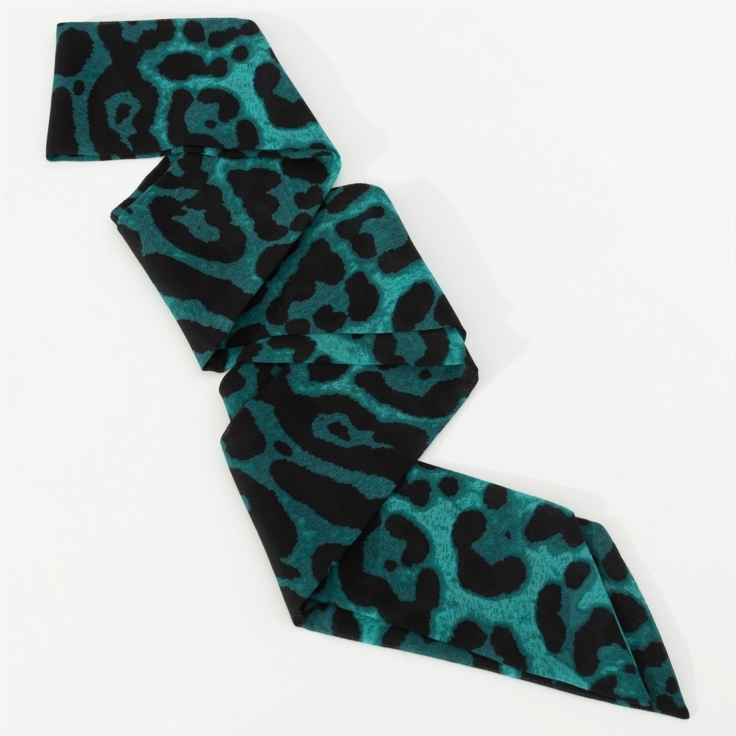 Изумрудный фон и леопардовый принт – для тех, кто любит показывать характер даже в мелочах. Ленту можно завязать на высоком хвосте или пучке, оставив длинные концы свободно спадать по спинке, – получается эффект сложной причёски без усилий. Одна лента – множество вариантов стилизации: можете повязать на сумку или дополнить подвесом и использовать в качестве украшения.