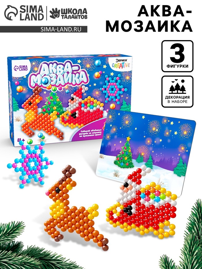 С аквамозаикой от торговой марки «Эврики» ребёнок соберёт объёмные фигурку из цветных бусинок. Детали плотно скрепляются друг с другом. Из бисера можно сделать интересную аппликацию на красочном фоне.