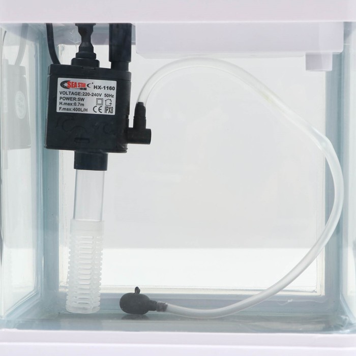 Производитель: SEA STAR; Габариты: 20 x 16 x 24; Страна: Китай; В боксе: 1 шт; Состав: Пластик, стекло; Материалы: пластик, стекло; Фасовка: по 1 шт; Индивидуальная упаковка: Картонная коробка; Габариты товара: 18 см × 15 см × 18 см; Сертификат: Не подлежит сертификации; Объём, л: 3,5; Крышка: Да; Вид установки: Настольный; Форма аквариума: Прямоугольный; Цвет отделки: Белый; Вид: Универсальный; Тип освещения: Светодиодная лампа Т8