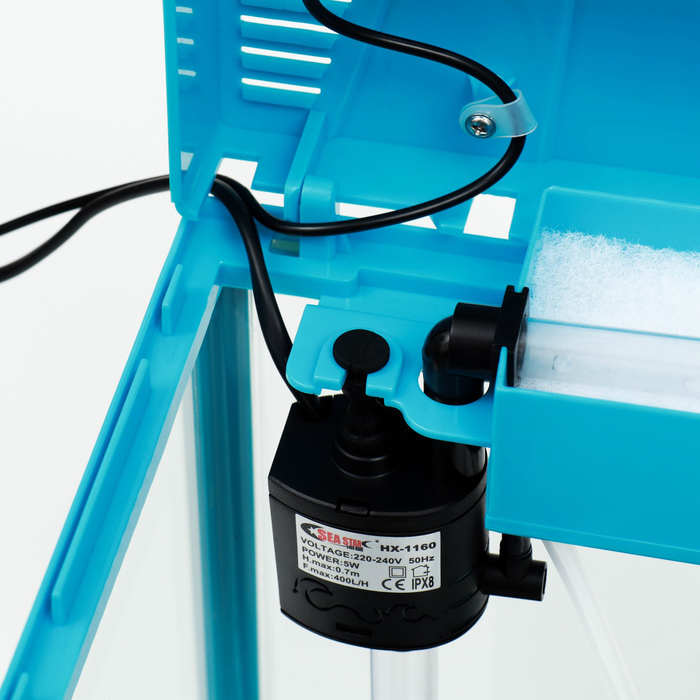 Производитель: SEA STAR; Габариты: 25,5 x 20 x 31; Объём, л: 12; Вид установки: В розетку, Настольный; Фиксированная цена: Да; Страна: Китай; В боксе: 1 шт; Состав: Пластик, стекло; Материалы: пластик, стекло; Фасовка: по 1 шт; Индивидуальная упаковка: Картонная коробка; Сертификат: Не подлежит сертификации; Толщина стекла, мм: 3; Крышка: Да; Форма аквариума: Прямоугольный; Цвет отделки: Голубой; Вид: Универсальный; Тип освещения: Светодиодная лампа Т8