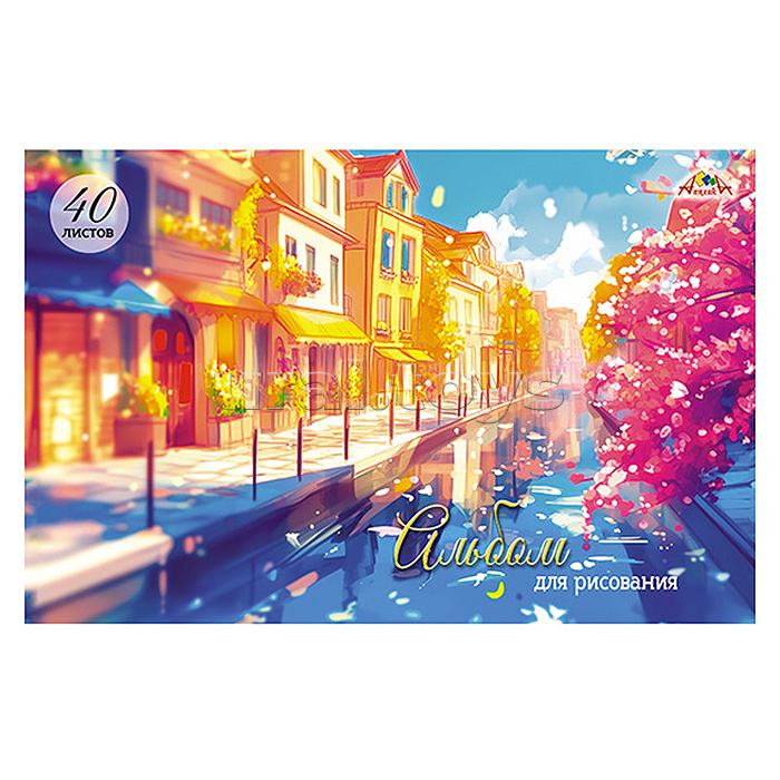 Альбом для рисования, 40 листов, формат А4, плотность 100 гр/м2. Внутренний блок - высококачественная офсетная бумага. Обложка - мелованный картон, полноцветная печать с лакированием блёстками. Крепление - скоба.