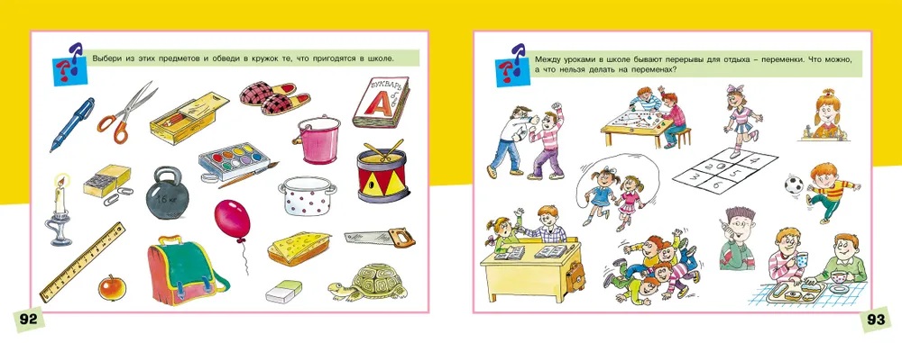 Альбом наполнен красочными иллюстрациями, понятными ребенку. Он поможет развить любознательность и кругозор, поскольку охватывает самые разные темы: от привычной домашней обстановки до сезонов года, увлечений и первых уроков.