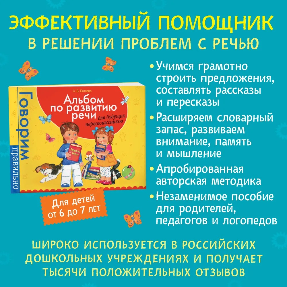 «Альбом по развитию речи для будущих первоклассников» – лауреат конкурса федеральной программы «Лучшее - детям», входит в серию «Говорим правильно», рекомендован для детей 6-7 лет.