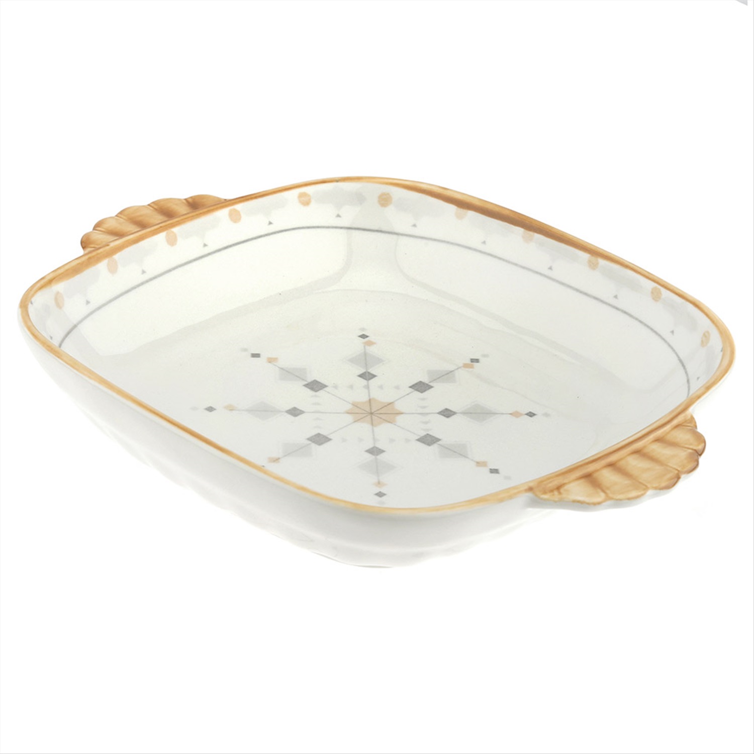 "Алдан" Блюдо фарфоровое 225х180х40мм, с ручками, с деколью, отводка (Китай)