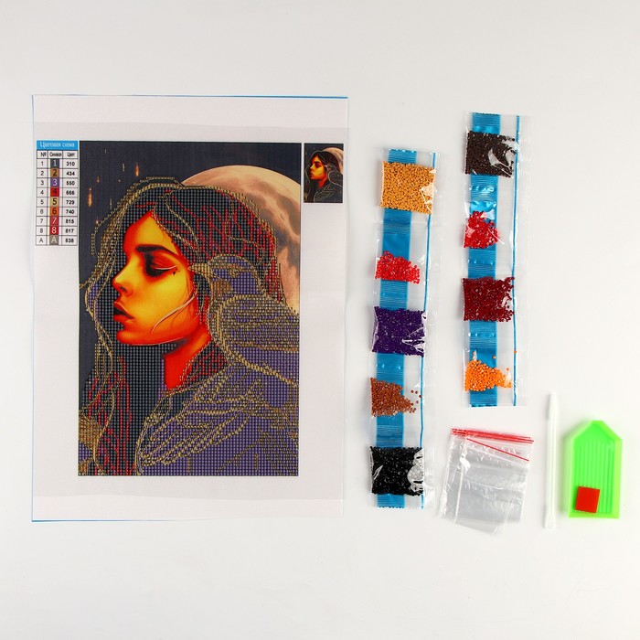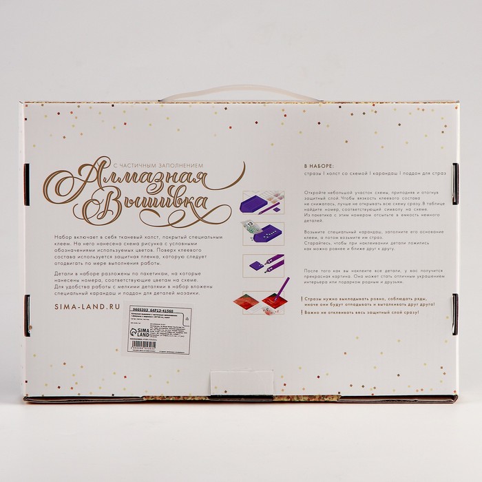 Часть изображения предстоит заполнить стразами, другая часть напечатана на холсте-основе. Поэтому набор подойдёт для тех, кто впервые пробует свои силы в этой технике или любит быстро добиваться результата.