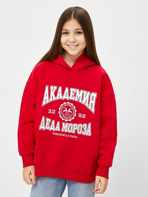 Стильное худи силуэта оверсайз для девочек, созданное из трикотажного футера с теплым подчесом. Округлая горловина, просторный уютный капюшон, длинные просторные рукава на манжетах – ничего лишнего. Дополнительную свободу дарит спущенная линия плеча. Отличный вариант для вашей девочки!