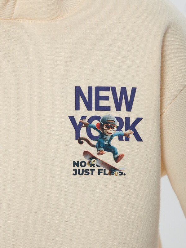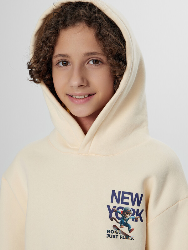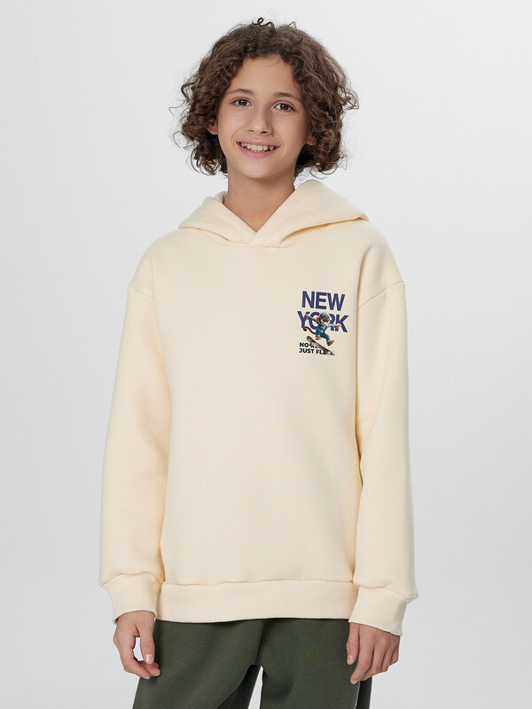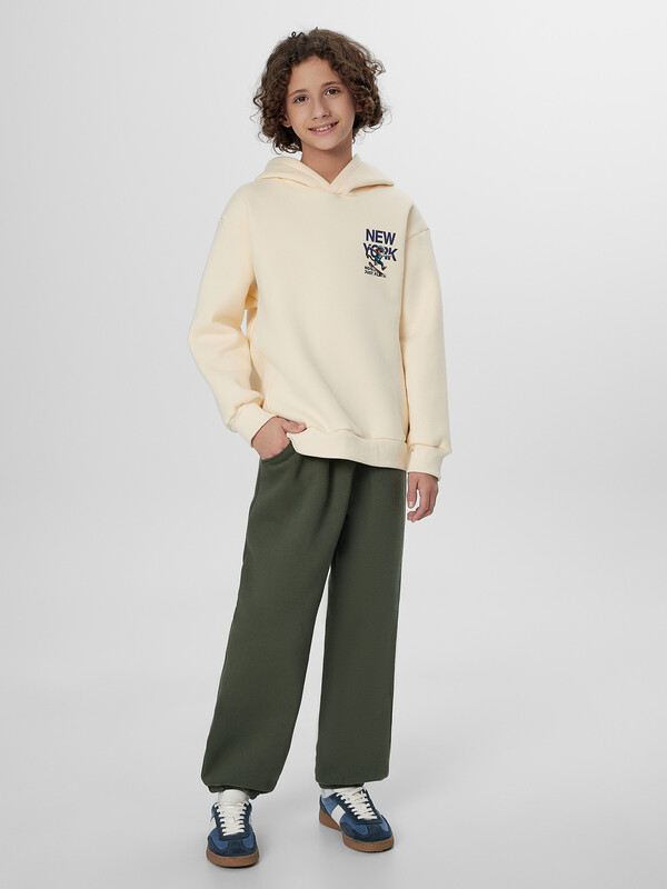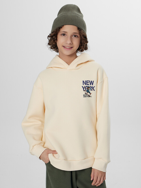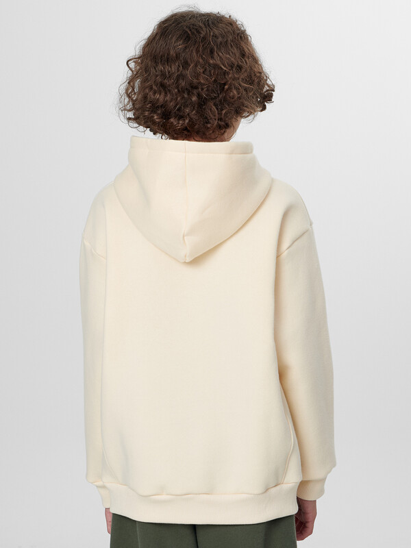 Анорак прямого силуэта с капюшоном. Линия плеча спущена. Рукава длинные, втачные. Горловина круглой формы. Капюшон на подкладке из кулирного полотна. В боковых швах полочки и спинки декоративные вставки из основного полотна. По низу изделия пояс из рибаны. По низу рукавов манжеты из рибаны.