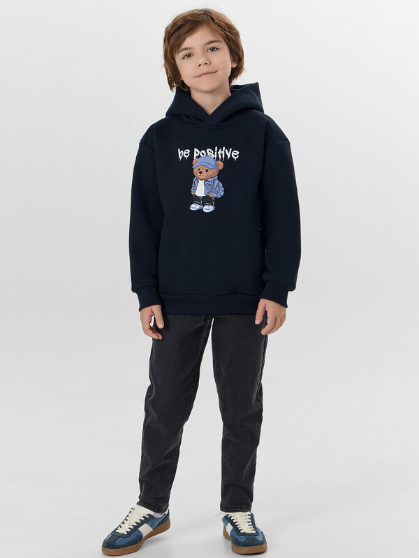 Анорак прямого силуэта. Перед, спинка цельнокроенные. Боковые швы переведены на деталь переда, в которых обработаны карманы. Подкладка карманов из кулирного полотна. Горловина круглой формы. В горловину втачан капюшон. Капюшон состоит из двух частей. Капюшон по переду идет в нахлест. По горловине проложена отделочная строчка.