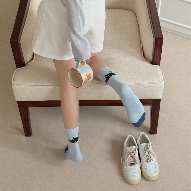 Apple, Tide, demi-season Japanese cute cartoon knee socks, Korean style, mid-length
