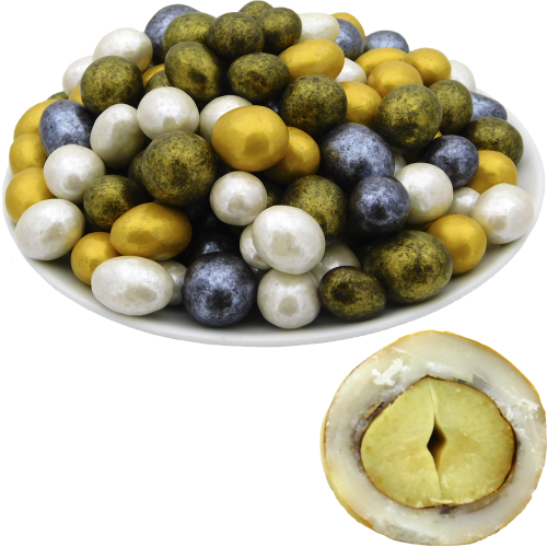 Состав: Глазурь (сахар, эквивалент масла какао, молоко цельное сухое, молоко обезжиренное сухое, эмульгатор лецитин соевый, ароматизатор идентичный натуральному ванинил), ядро орехов арахиса жаренное, глянцеватели.