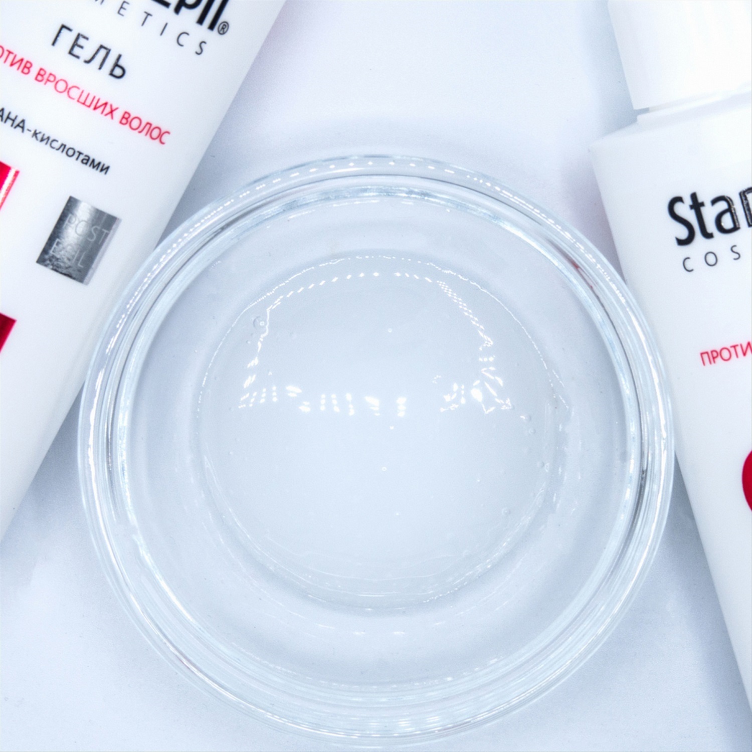 Мягкий гель с фруктовыми кислотами (яблочная, лимонная, молочная) против врастания волос после процедуры биоэпиляции. Кислоты, входящие в состав геля, помогают мягко справиться с фолликулярным кератозом, обеспечивают беспрепятственный рост молодых тонких волос. Гель оказывает увлажняющее, осветляющее, выравнивающее действие на кожу, способствуя устранению потемнений и повышению регенерации кожи. pH 4,0.
