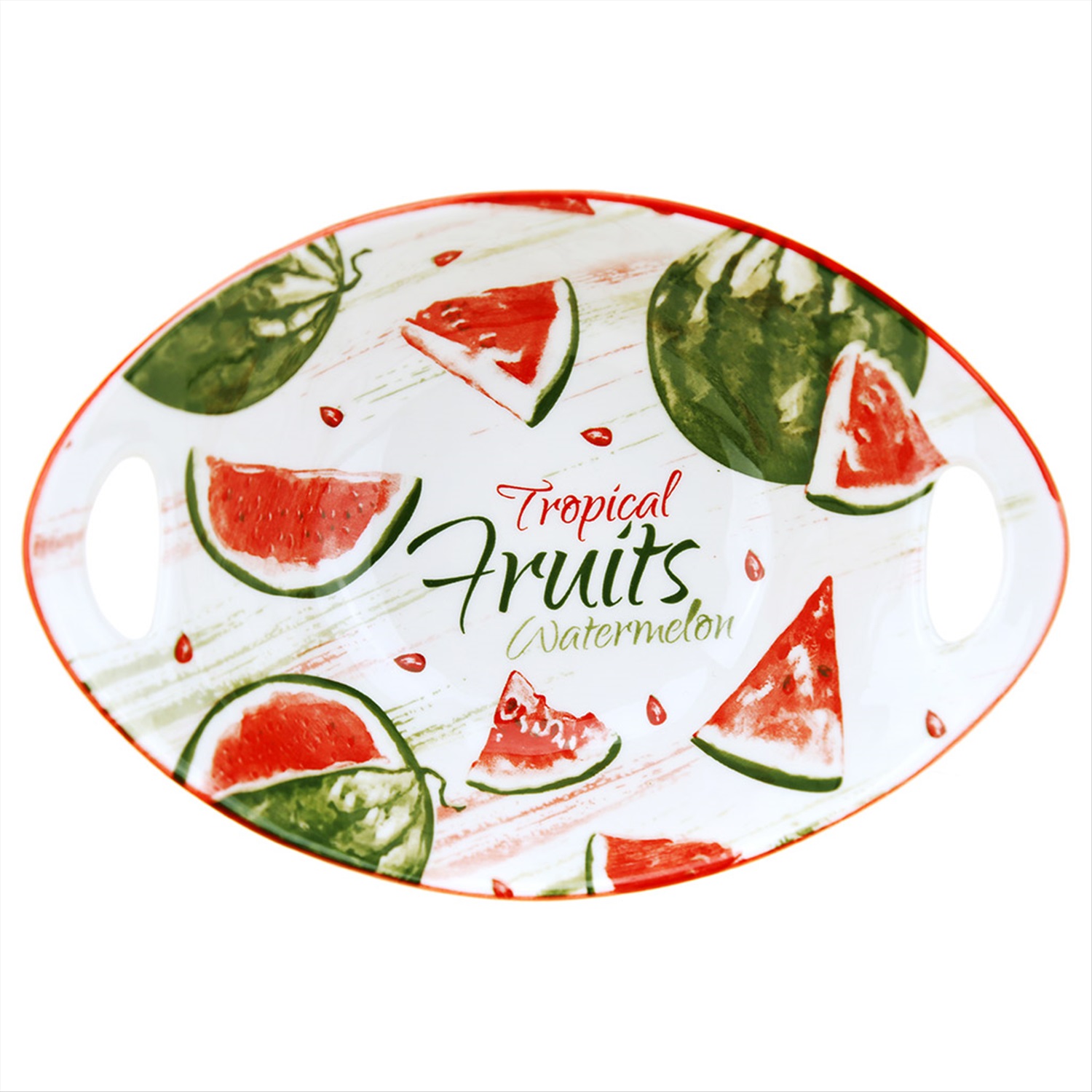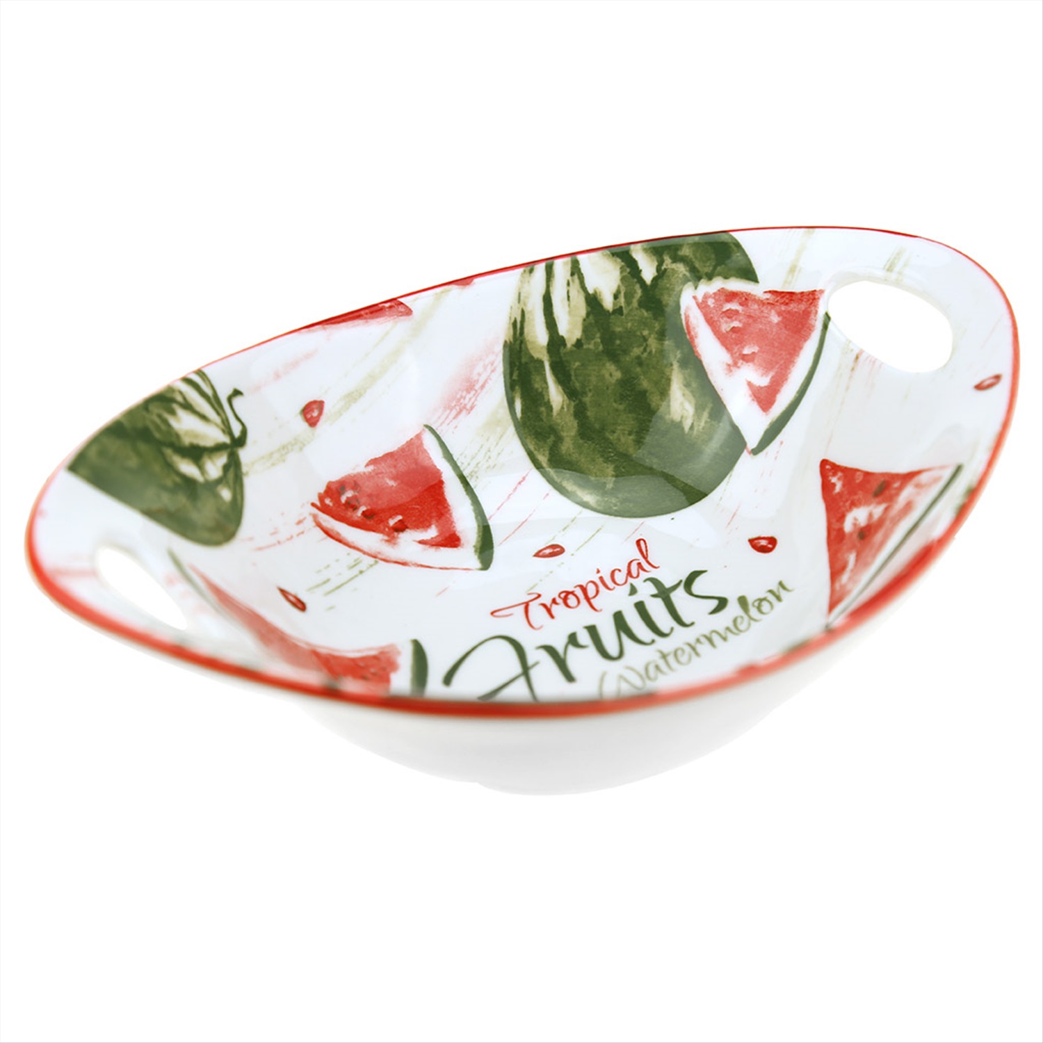 "Арбуз" Салатник фарфоровый 500мл, 22,2х15,7х6,8см, с ручками, с деколью, отводка (Китай)