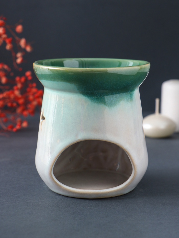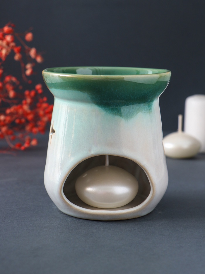 Аромалампа для эфирных масел «Море волнуется», керамика, зелёный, 8.6×8.6×9.8 см
