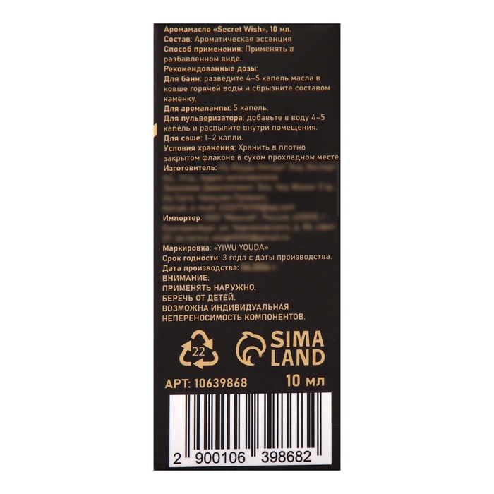 Флакон объёмом 10 мл удобно брать с собой, чтобы в любой момент наслаждаться этим волшебным ароматом. Аромамасло Secret Wish — идеальный выбор для тех, кто хочет подарить себе и близким моменты уюта и радости. Великолепное дополнение к вашему образу или изысканный подарок для любимых.