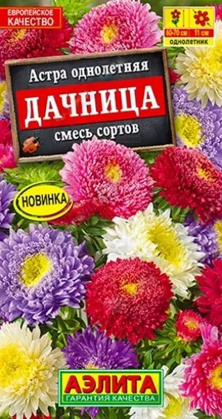 Семена Астра Дачница смесь. Лучшая смесь астр для срезки! В вазе соцветия долго сохраняют привлекательный внешний вид! Растение с прямостоячими крепкими стеблями, высотой 60-70 см. Соцветия крупные, густомахровые, с ярким центром, диаметром до 11 см. Каждое растение формирует до 10 цветоносов. Отлично подходит для различных смешанных клумб и цветников.