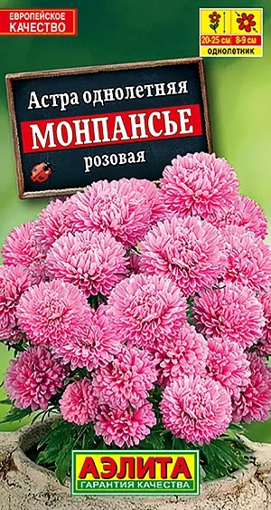 Невысокая компактная астра с необычайно обильным цветением. Густомахровые шаровидные соцветия 6-7см, настолько плотно покрывают кустики, что листвы почти не видно. Растения ветвистые, высотой до 20 см, хорошо переносят воздействие дождя и ветра, сохраняя свою декоративность с июля до окончания сезона. Астры холодостойкие, светолюбивые. Идеально подходят для выращивания в горшках, садовых контейнерах и балконных ящиках. Отлично смотрятся на переднем плане клумб и бордюров.