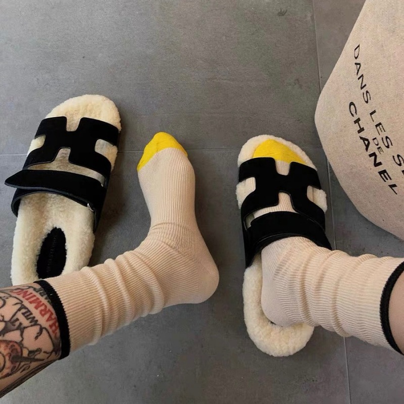 Autumn and winter light luxury retro double -needle contrasting pile socks, coloring wild trendy socks, modern men and women color socks, socks in the mouth
