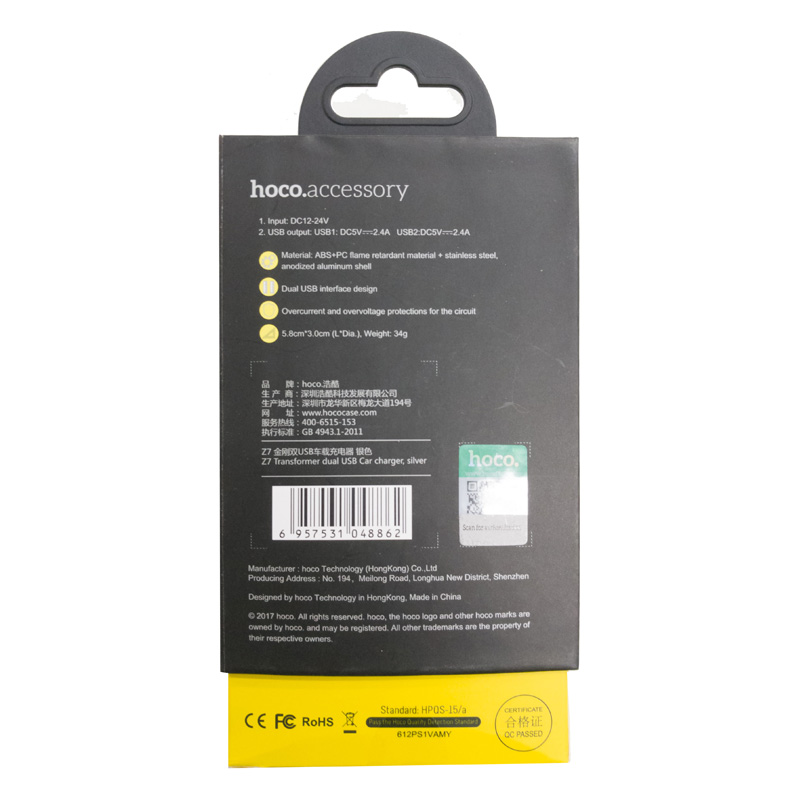 Автомобильное зарядное устройство hoco Z7 Transformer 2 USB