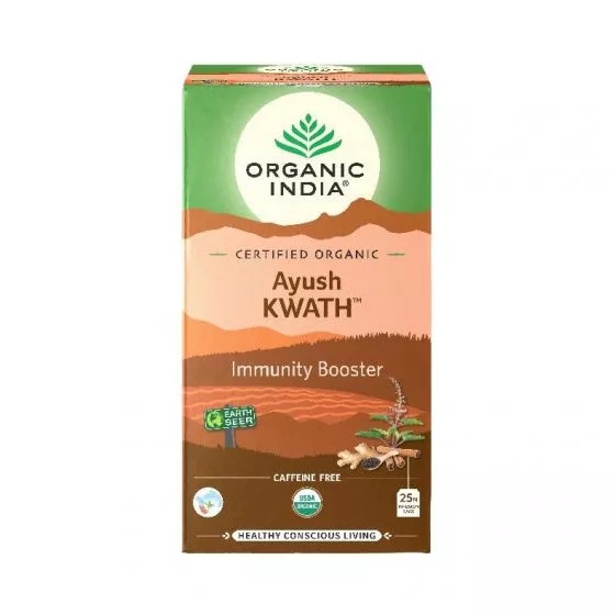 Аюш Кватх (Ayush Kwath) – великолепный напиток для укрепления иммунной системы. Он состоит из имбиря, корицы, черного перца и тулси, также известного как «священный базилик» или «королева трав». Это растение наделено целебной силой и обладает замечательными жизнеутверждающими свойствами, неоднократно отмеченными в древних индийских писаниях, насчитывающих более 5000 лет, и в данном напитке вы можете в полной мере насладиться ими. Желаем вам приятного чаепития, здоровья и счастья в жизни.