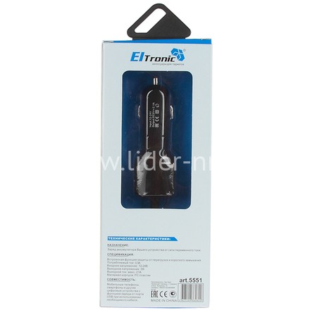 АЗУ ELTRONIC Premium Micro USB с USB выходом (2100mAh) коробка (витой/черный) ЛИТОЕ