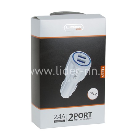 АЗУ Lider Mobile Type-C с 2 USB выходами (2400mAh) коробка (белый)