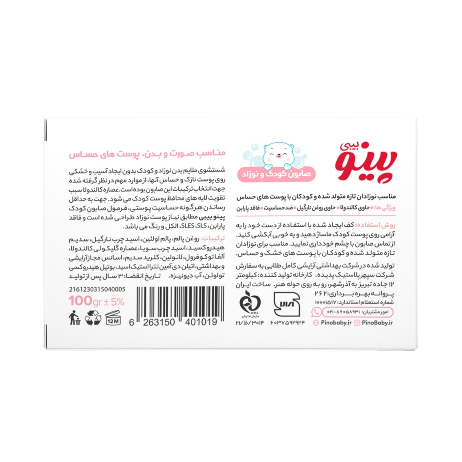 Детское мыло Baby Pino с экстрактом календулы и витамином Е подходит для деликатного очищения и ухода за нежной кожей ребенка. Не сушити не раздражает. Вкодящие в состав мыла натуральные компоненты способствуют насыщению кожи малыша питательными веществами и обеспечивают дополнительную защиту для чувствительной кожи. Детское мыло Валу Ріло не содержит парабенов, SLS, SLES, спирта, красителей и разработано с учетом особенностей детской кожи. Типоаллергенно. Рекомендован для детей с чувствительной кожей с первых дней жизни.